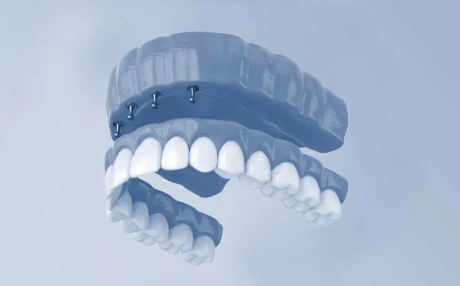 Pentru o proteză totală fixă, se folosesc de obicei 4 implanturi la mandibulă (All-on-4) iar la maxilar 6 implanturi (All-on-6).